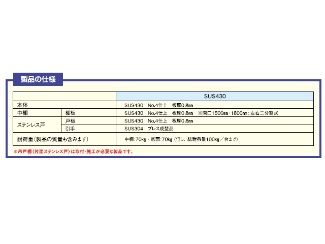 外観寸法は、幅 1000 x 奥行 300 x 高さ 750mm 、材質は SUS430です。