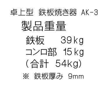 業務用 卓上 鉄板焼き器 AK-3 横幅910x奥行560x高さ180mm